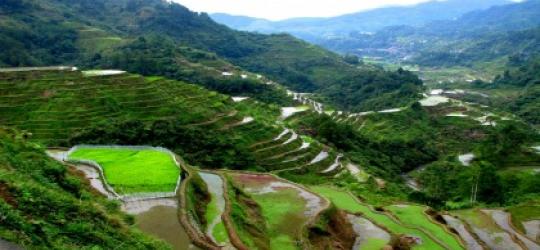 Sagada is a town in the Cordillera Mountains, within the Philippines’ Mountain Province. Echo Valley’s hanging coffins are displayed high on cliffs, while centuries-old coffins are stacked in burial sites like Lumiang Cave. The nearby Sumaguing Cave has unusual limestone formations. To the north, Bomod-ok Falls has a natural swimming pool. Rice terraces are carved into the area's surrounding mountainsides.